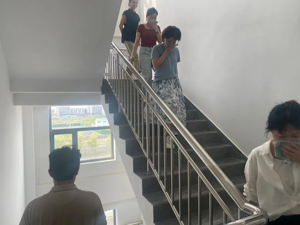 此次演練模擬辦公區(qū)域突發(fā)火災(zāi)場(chǎng)景,重點(diǎn)圍繞人員疏散、初期滅火和設(shè)備實(shí)操等環(huán)節(jié)展開。15時(shí)30分,綜合樓消防警報(bào)驟響,消防卷簾自動(dòng)落下,應(yīng)急照明亮起,整個(gè)綜合樓瞬間進(jìn)入模擬火場(chǎng)狀態(tài)。在消防總指揮和消防片長(zhǎng)、樓長(zhǎng)的指組織下,樓內(nèi)全體人員根據(jù)應(yīng)急廣播指引,沿預(yù)定路線迅速有序撤離至室外集結(jié)點(diǎn),與此同時(shí),安保人員第一時(shí)間撥打119報(bào)警電話,微型消防站迅速啟動(dòng)消防設(shè)施,開展火場(chǎng)控制和初期滅火等工作。最終,所有人員安全撤離。
